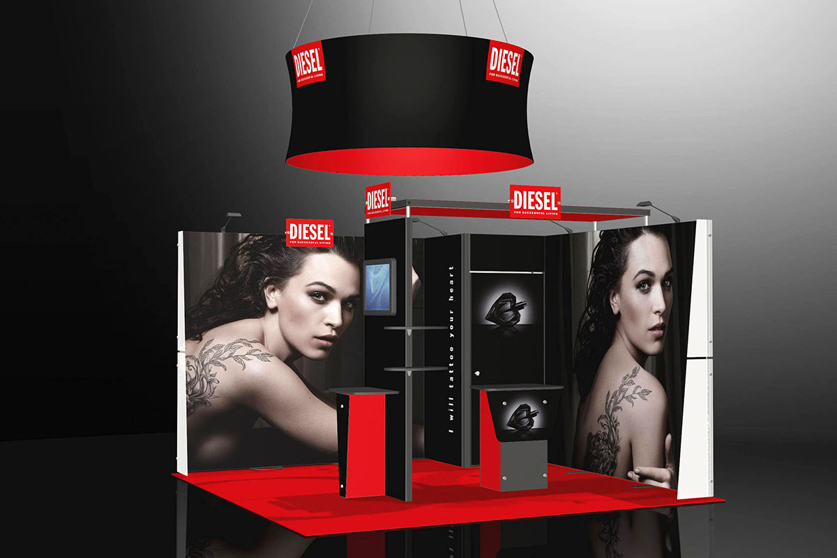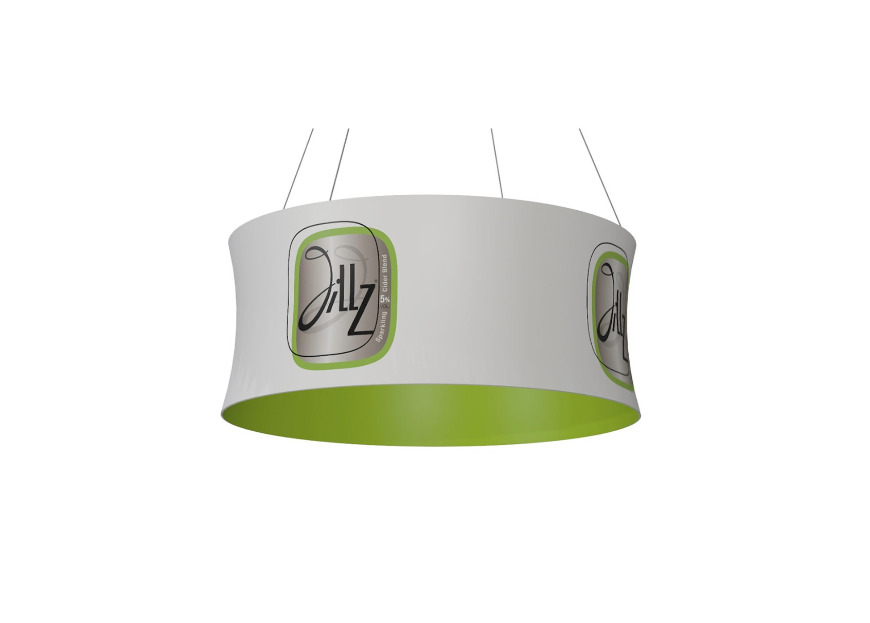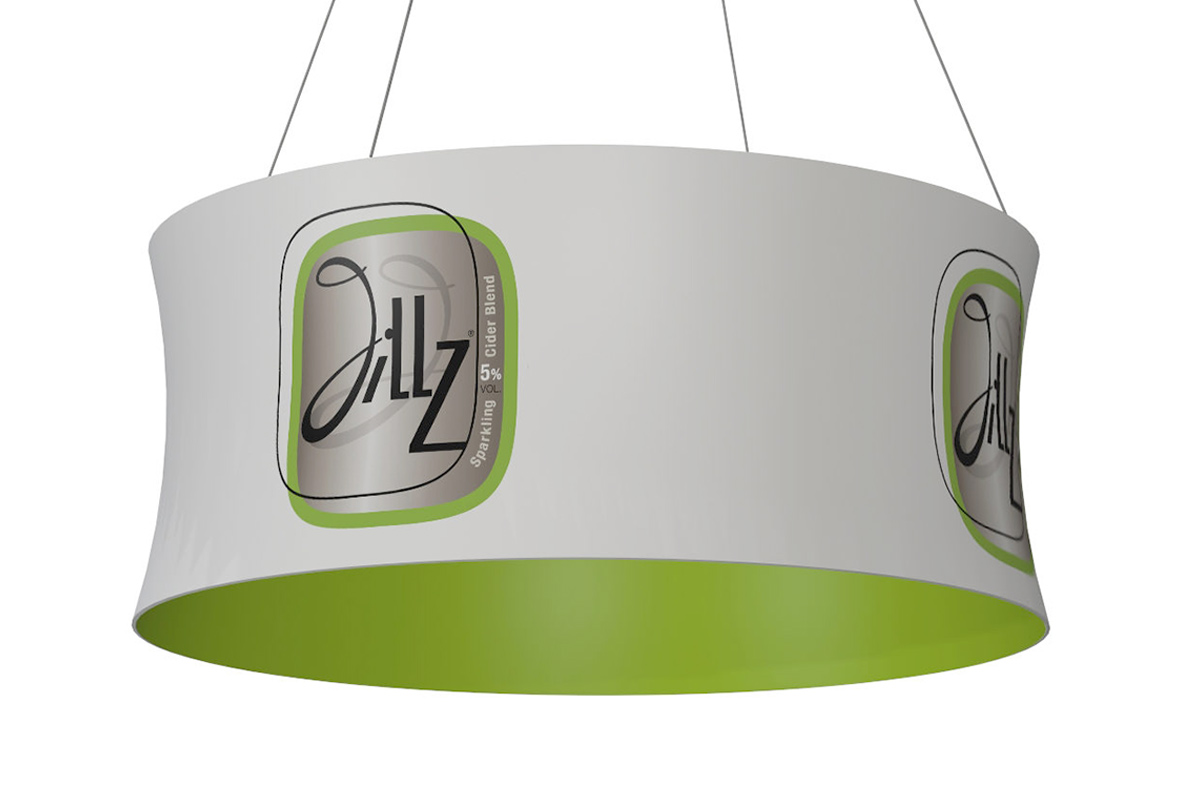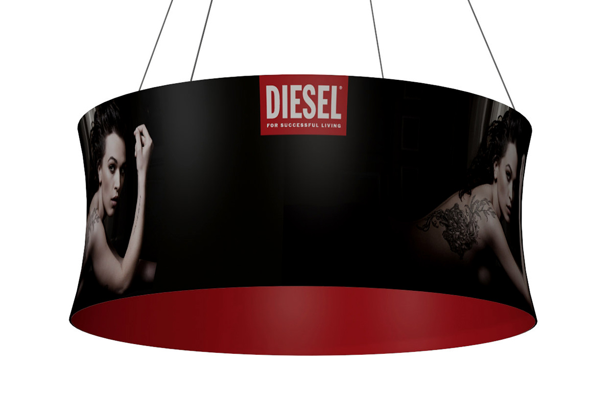 Imprimimos Expo Hanging Banner en sublimación para hacerlo más duradero (lavable) y el resultado final son colores brillantes y textos nítidos. Lo servimos en un ancho 300 cm.
