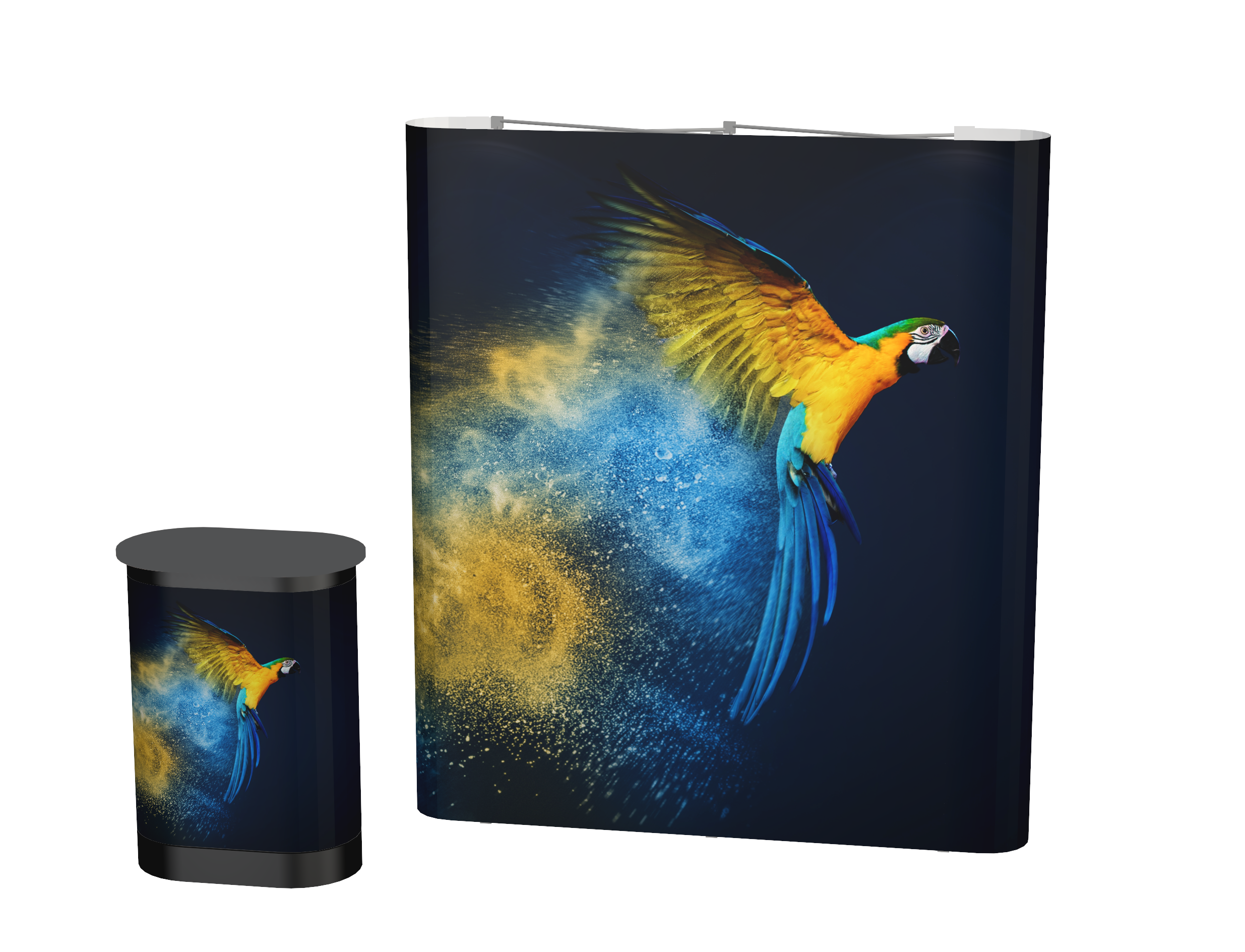 Expo Outstanding Magnético Recto es un sistema fácil de montar, la estructura lleva cierres magnéticos. Se transporta normalmente en un baúl de transporte con ruedas convertible en mostrador.  Está disponible en versión recta y curva y en varias medidas.  Tiene como accesorios: luces que pueden ser de Led o halógenas de 150w. Todas nuestras gráficas llevan un laminado especial anti-arañazos.