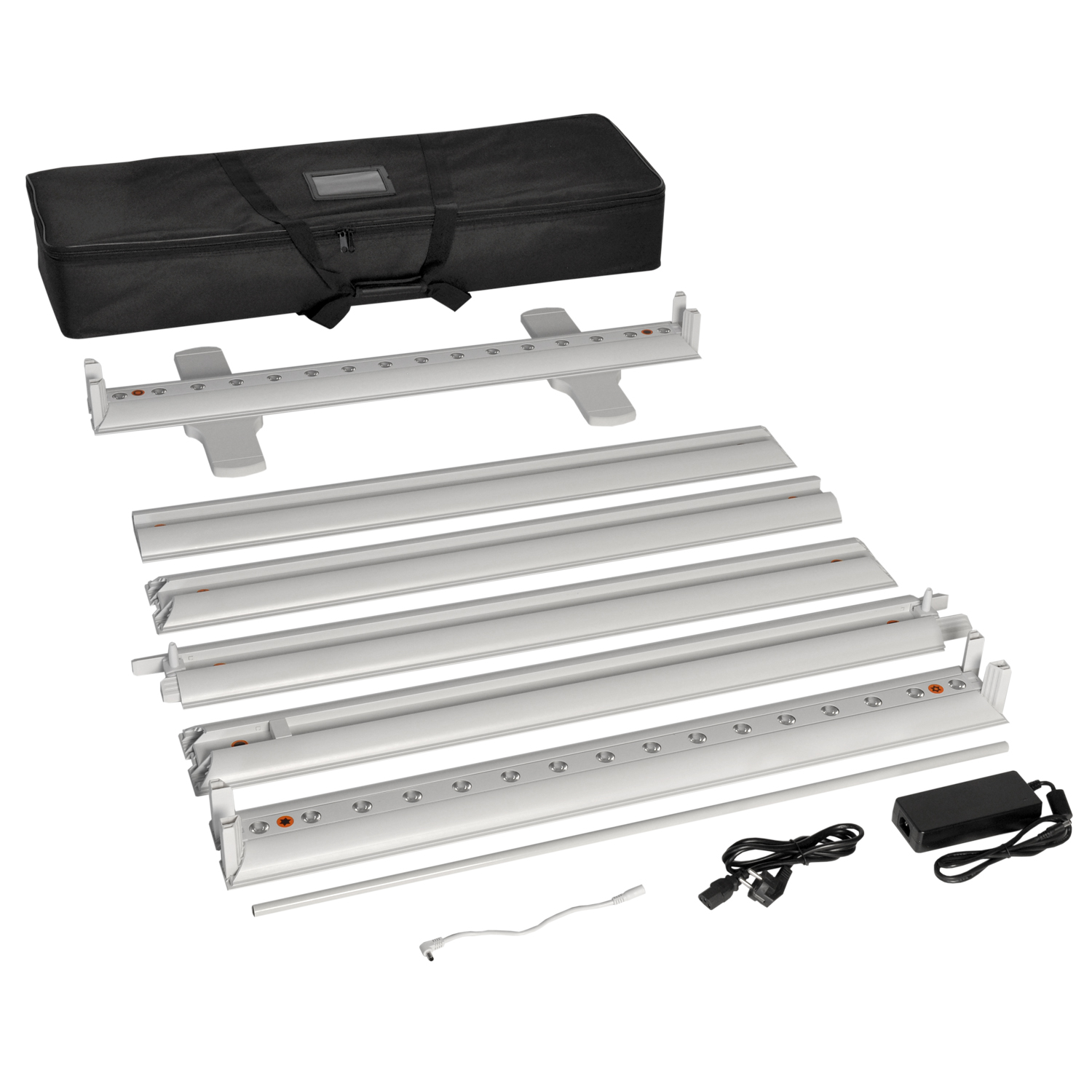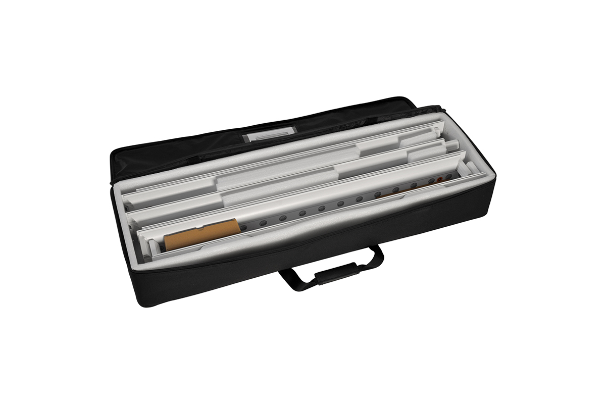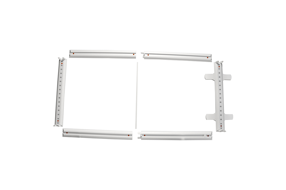 Expo LightBox está compuesto de perfiles de plástico de 12 cm. de ancho. Los Leds están integrados en el perfil y proporcionan una luz uniforme. El cableado está integrado en los perfiles y al conectarlo entre sí todos los módulos Led se conectan.