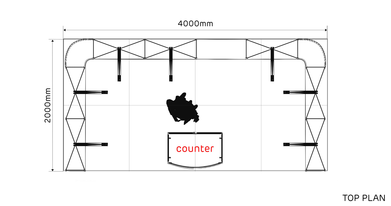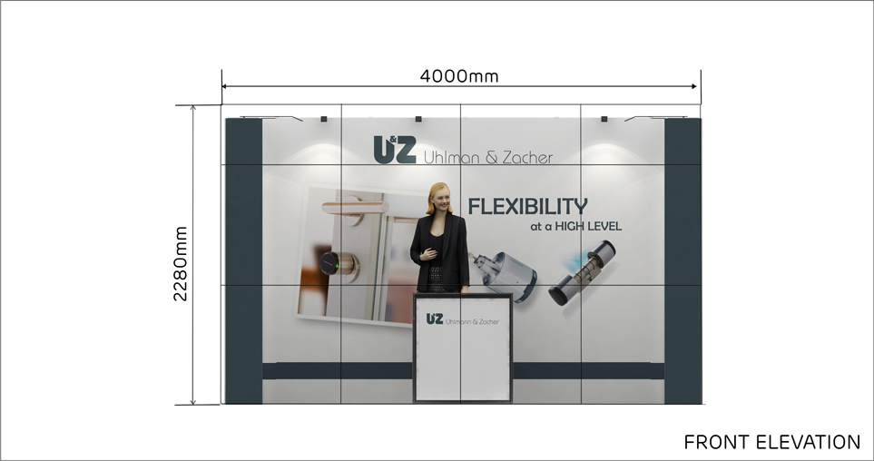 Con una longitud de 4m. y un ancho de 2 m. este stand de 8 m² tiene un diseño abierto y es ideal para presentar sus productos y servicios en ferias.