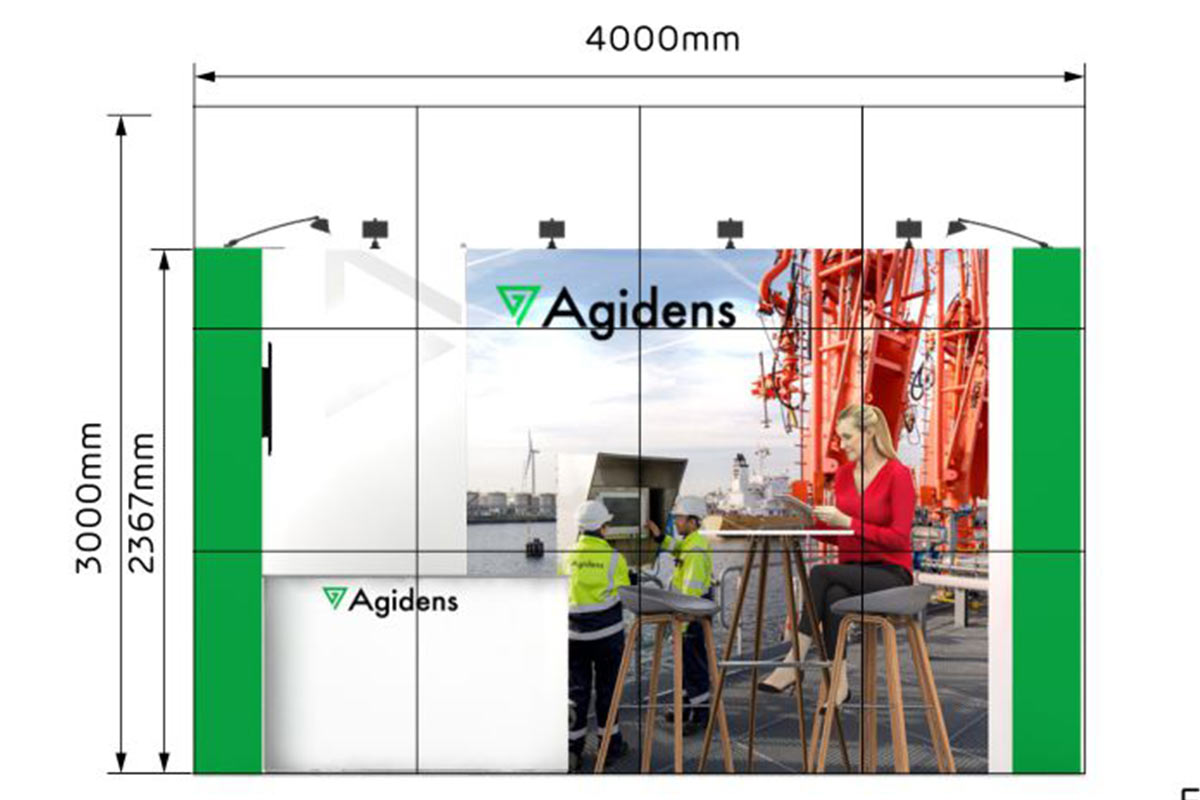 Con una longitud de 4m. y un ancho de 3 m. este stand de 12 m² tiene un diseño abierto y es ideal para presentar sus productos y servicios en ferias.