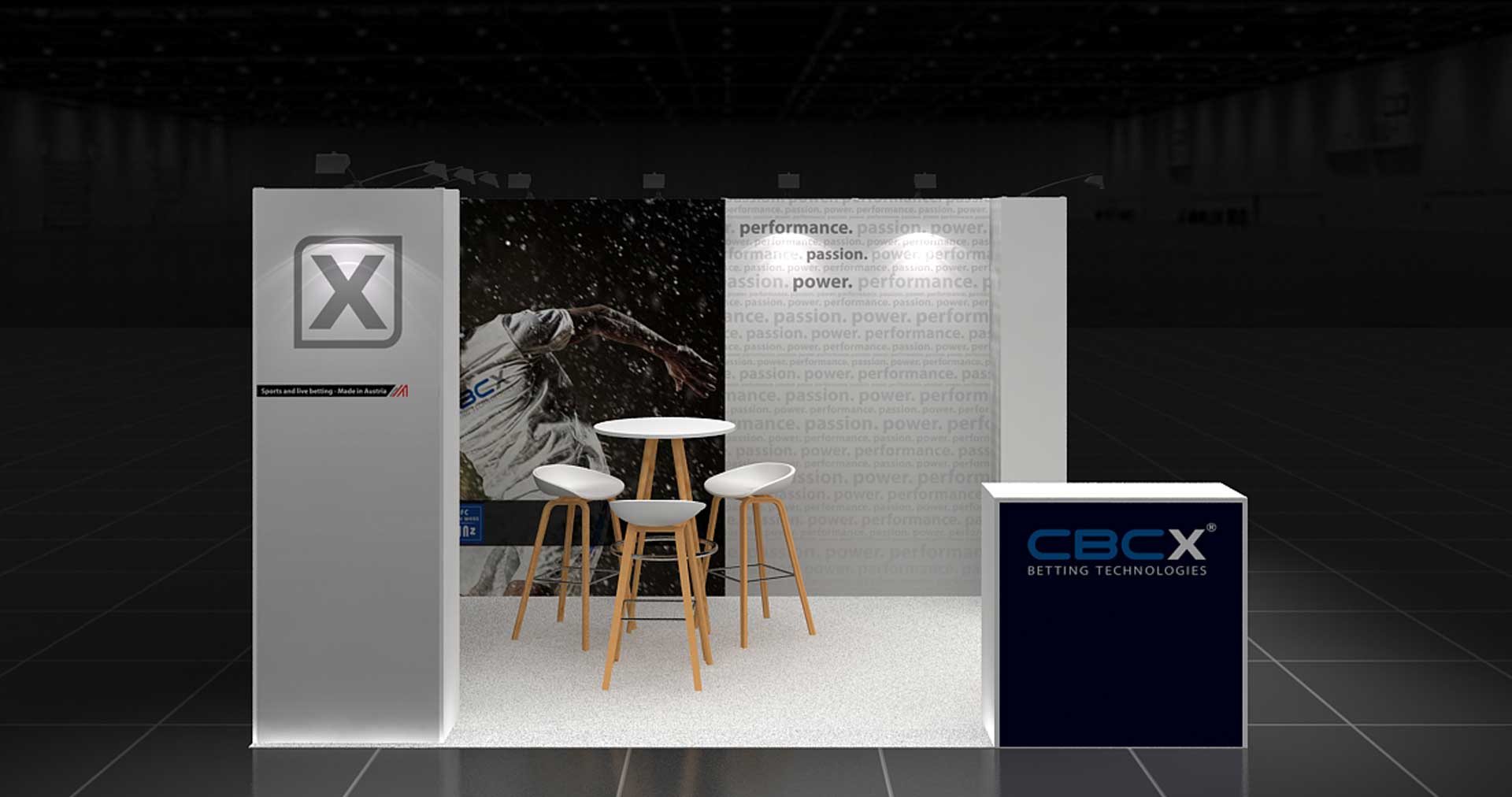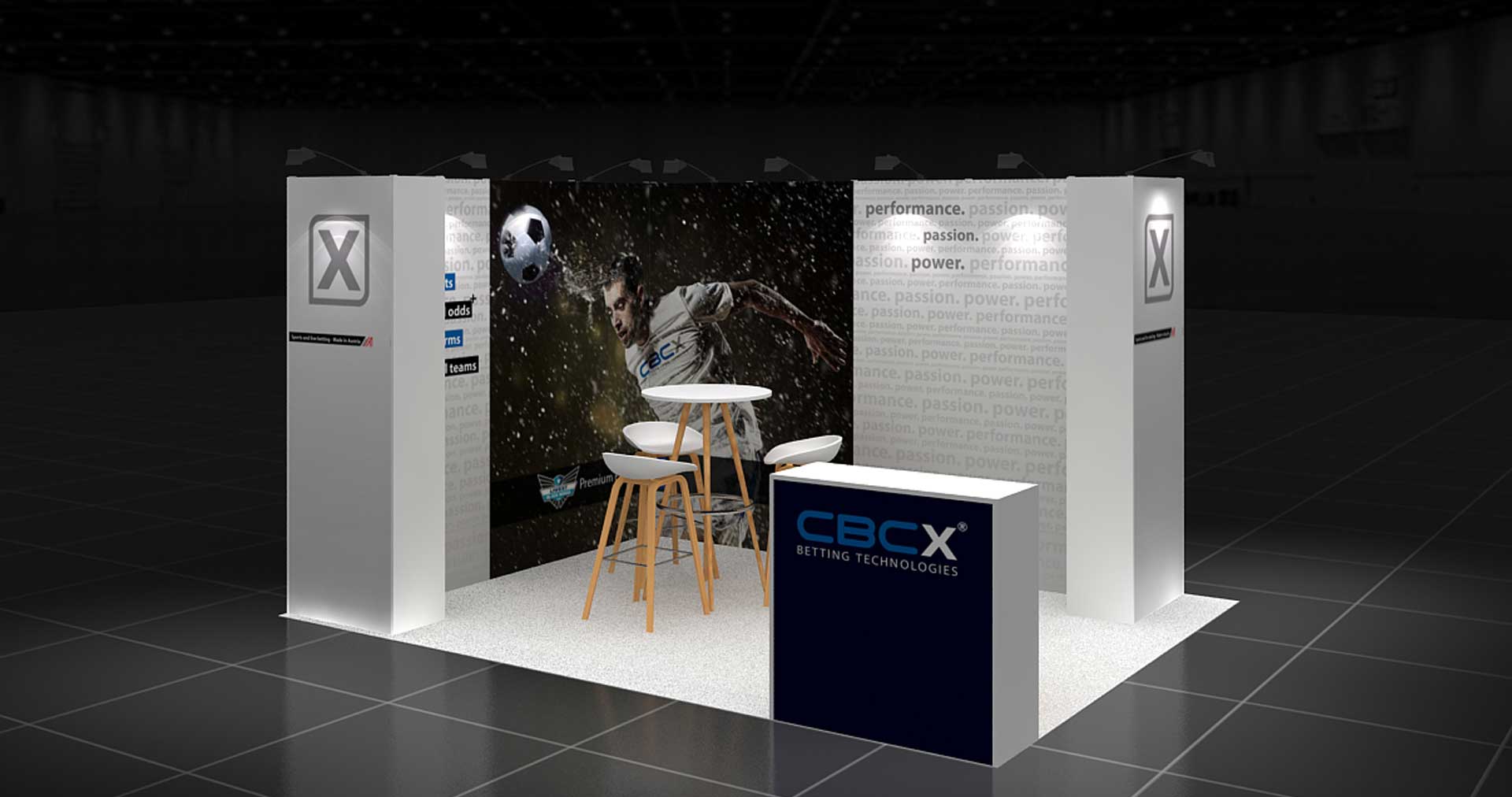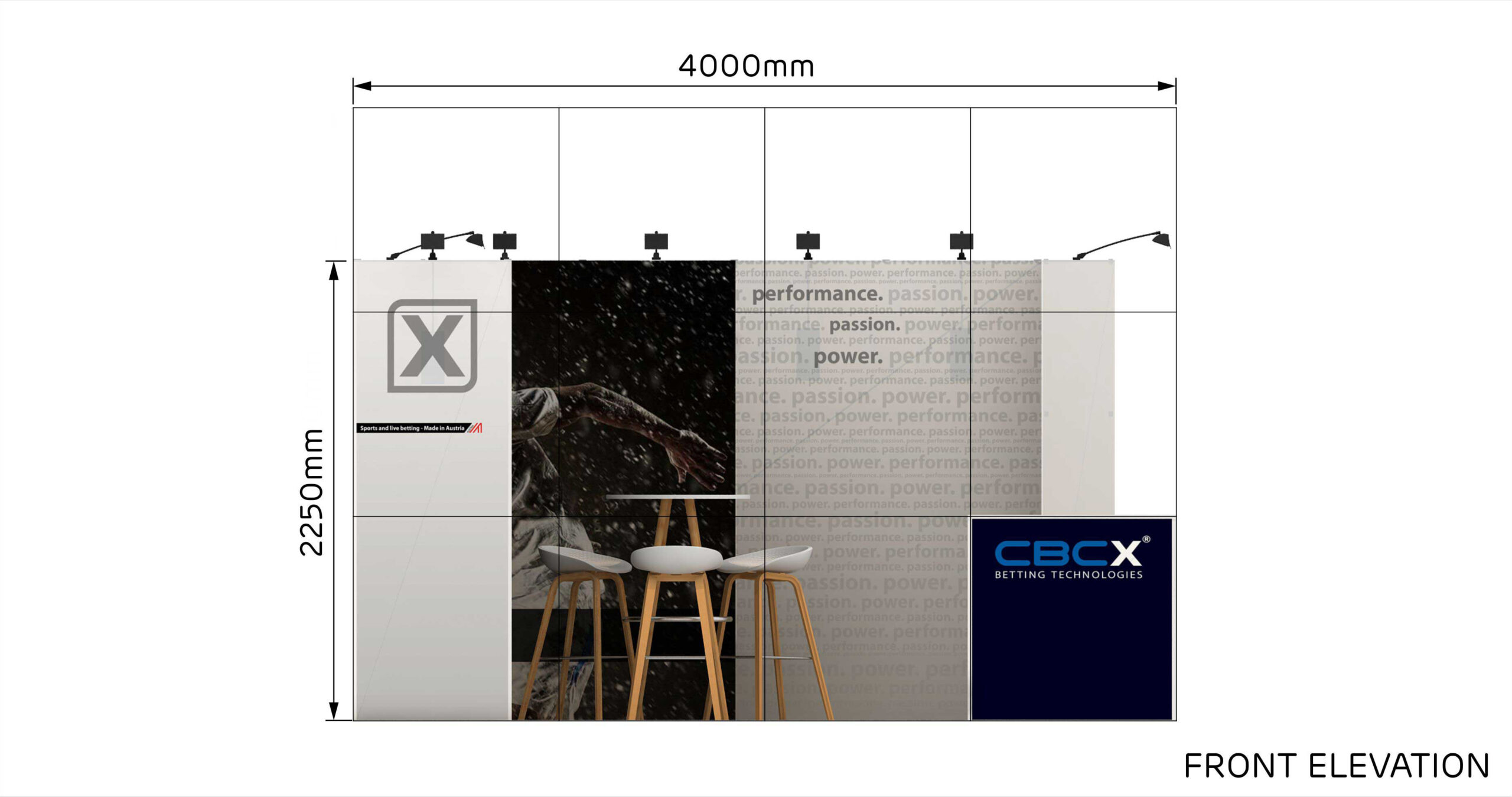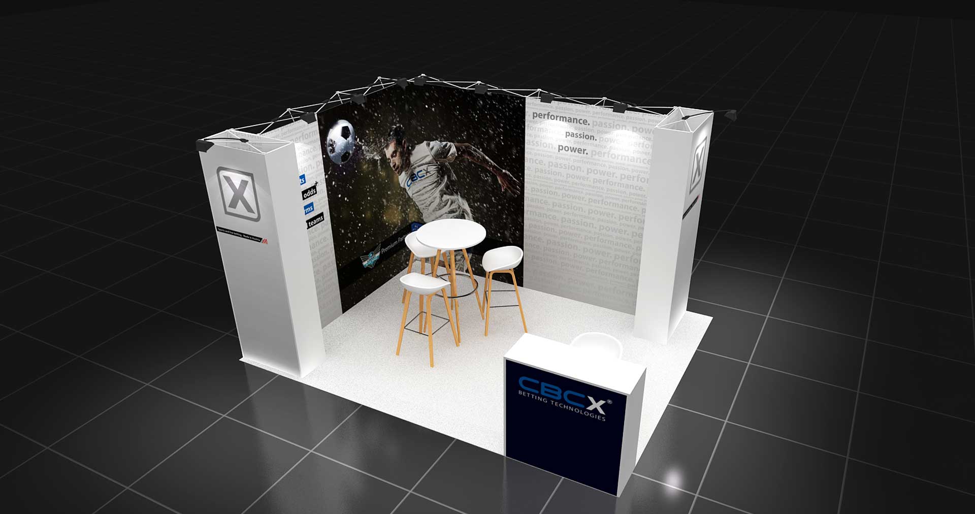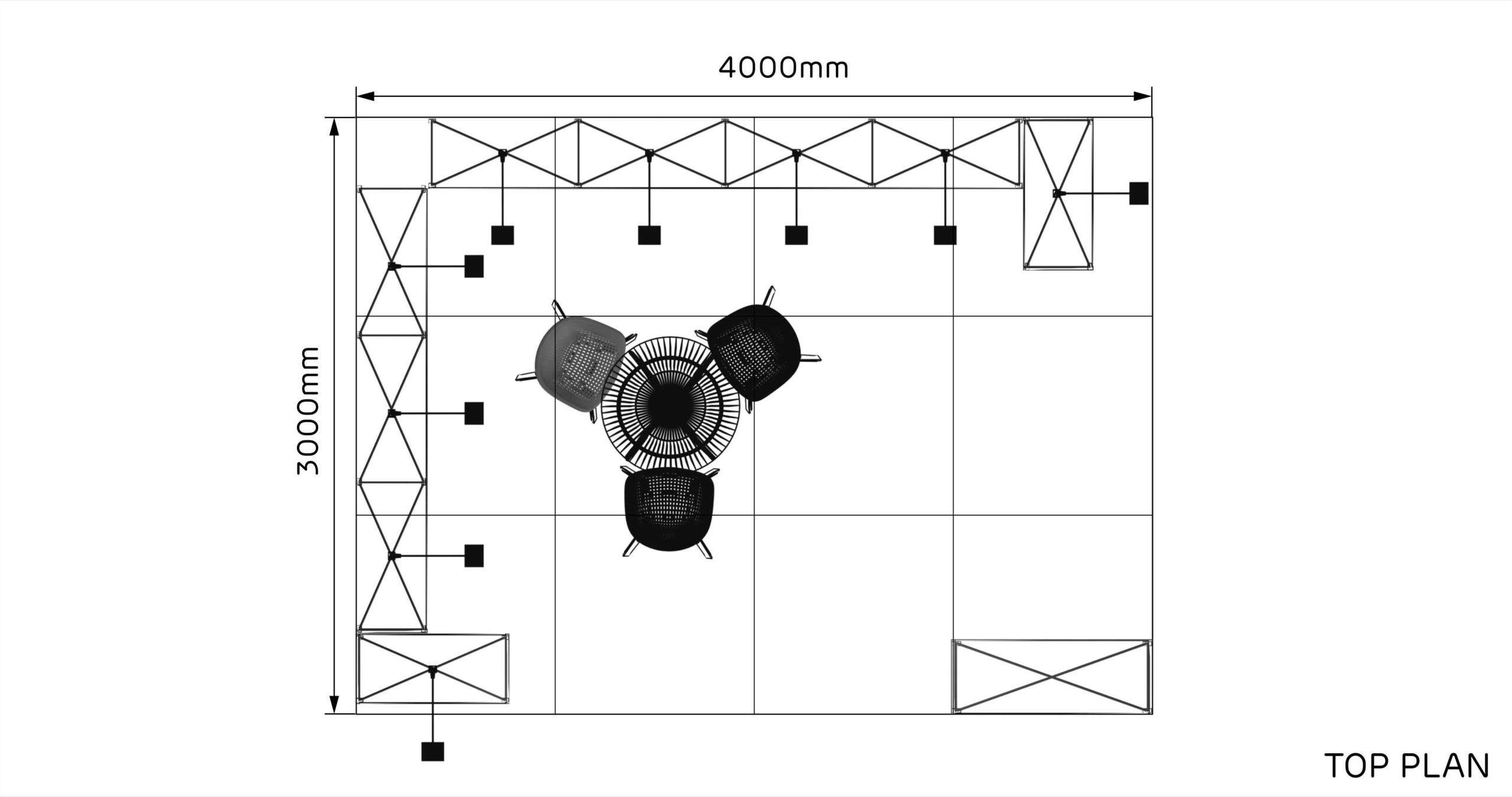Con una longitud de 4 m. y un ancho de 3 m. este stand de 12 m² tiene un diseño abierto y es ideal para presentar sus productos y servicios en ferias.