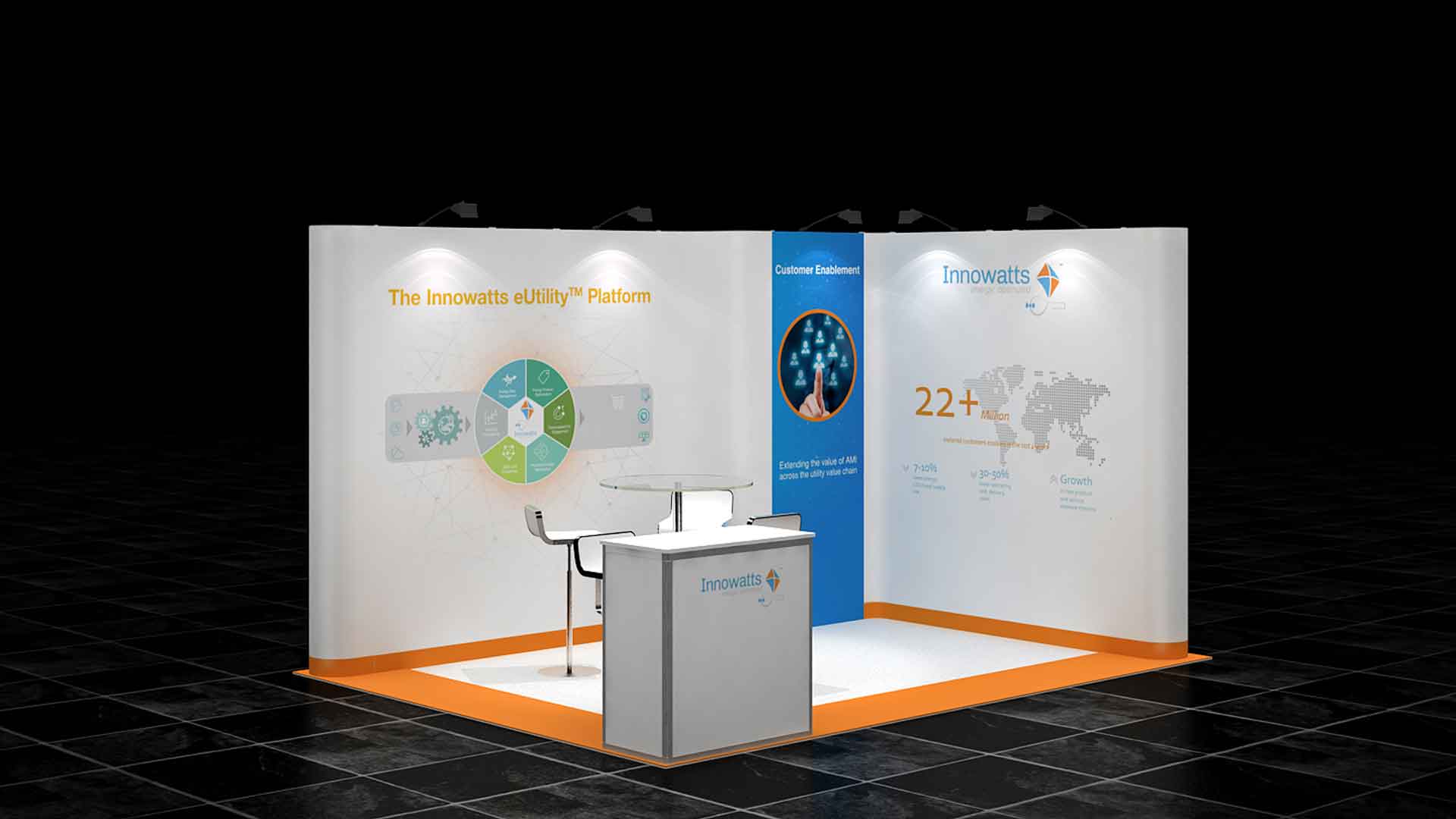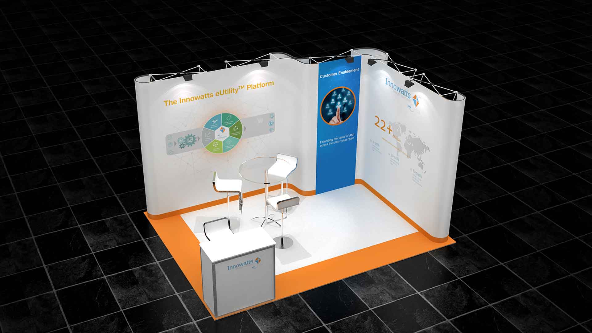 Las gráficas de este stand son imantadas y permiten su cambio de forma rápida. Al ser un stand modular, se adapta fácilmente a otras configuraciones y tamaños.