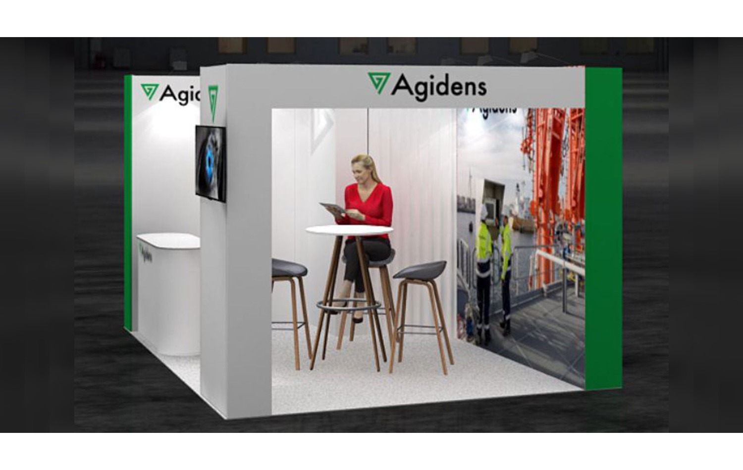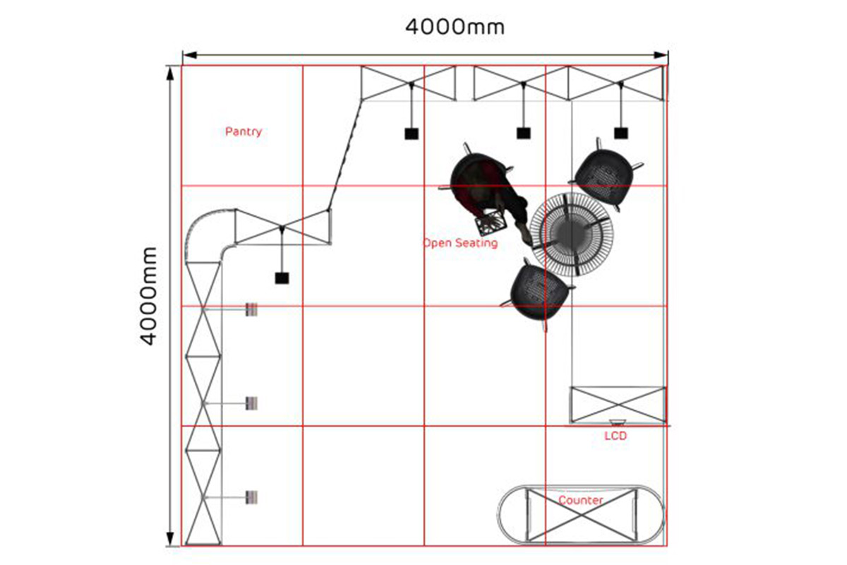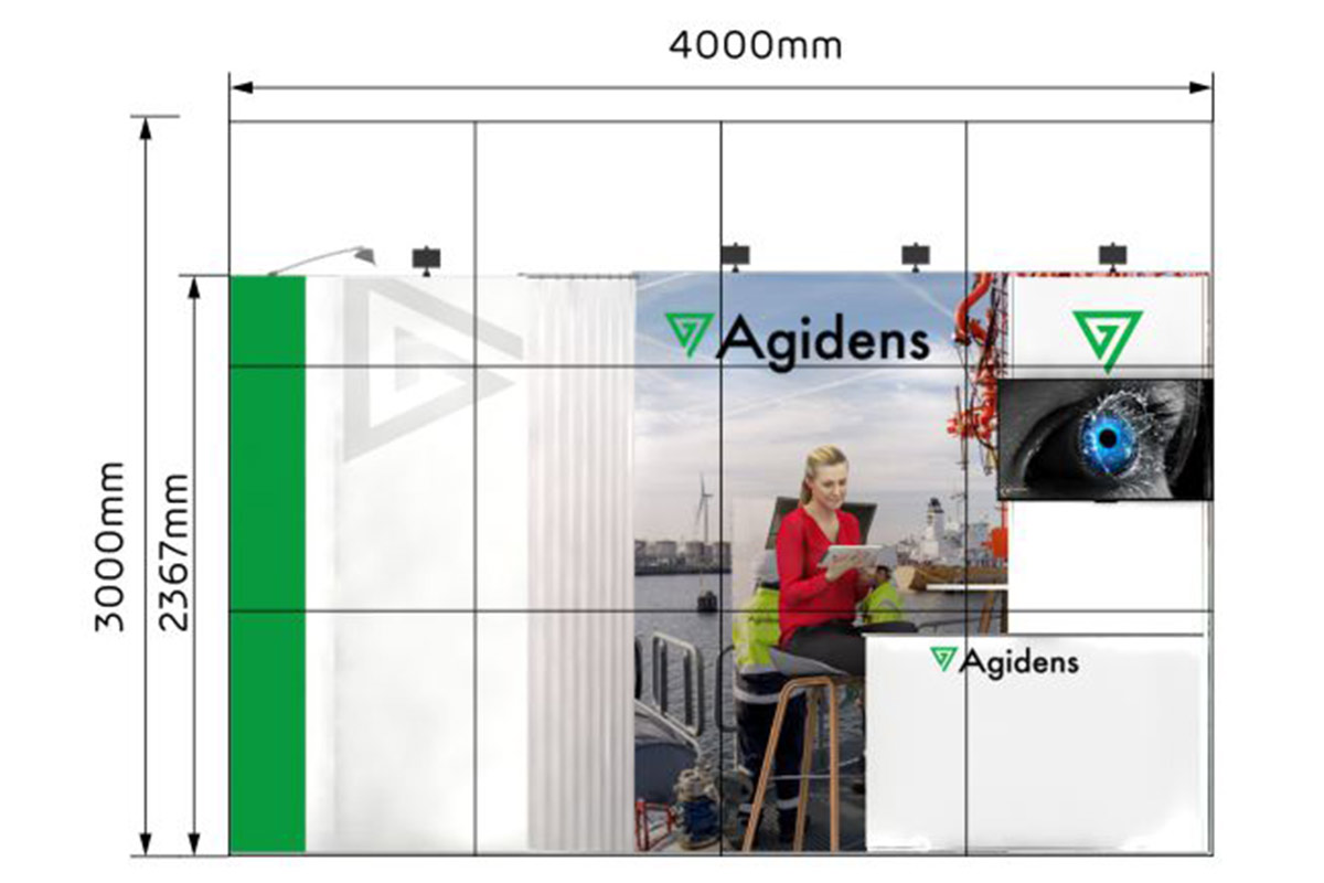 Con una longitud de 4 m. y un ancho de 4 m. este stand de 16 m² tiene un diseño abierto y es ideal para presentar sus productos y servicios en ferias.