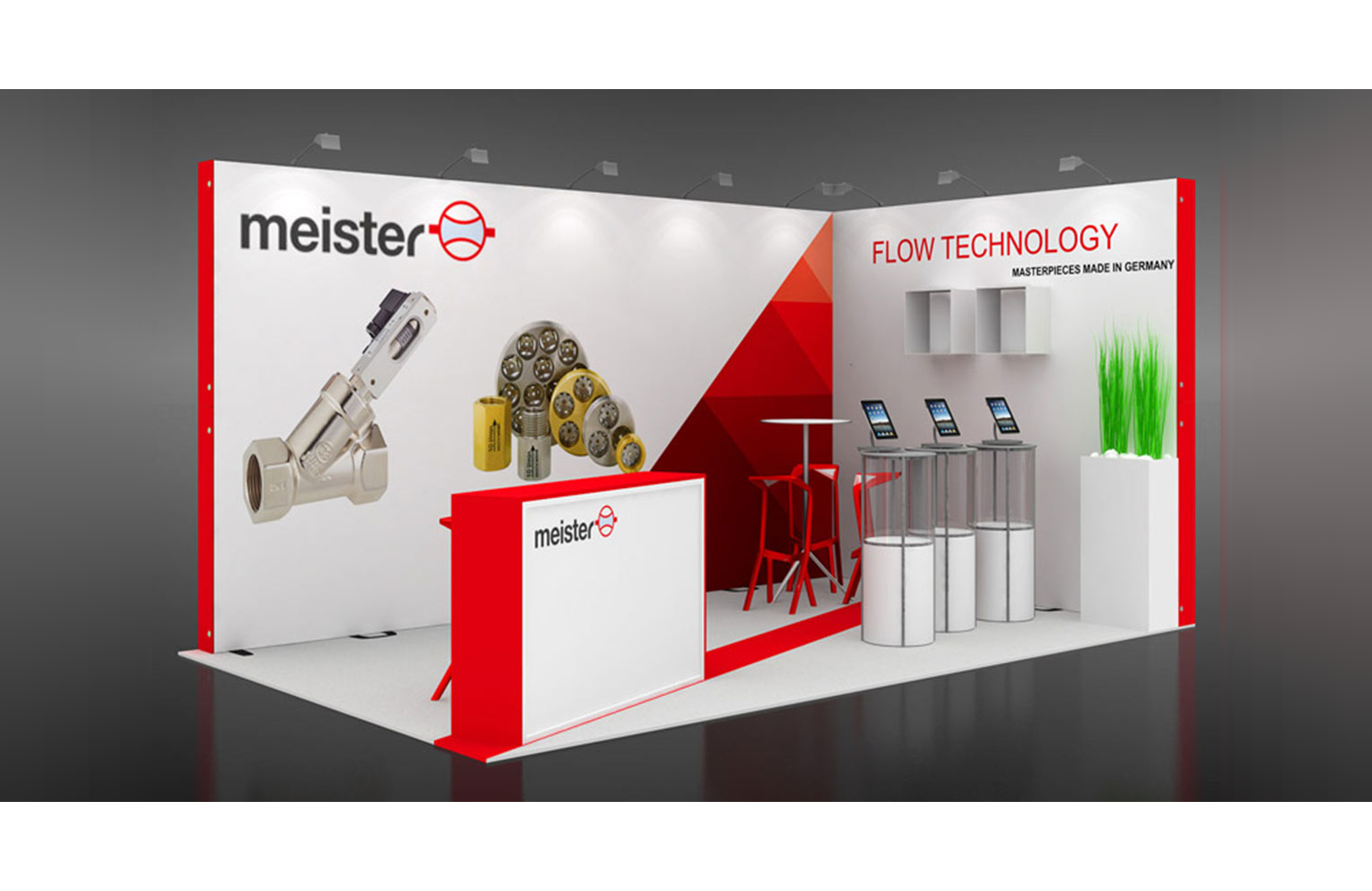 Este stand está compuesto por 2 paredes con impresión textil. Las imágenes impresas en tela son fácilmente intercambiables.