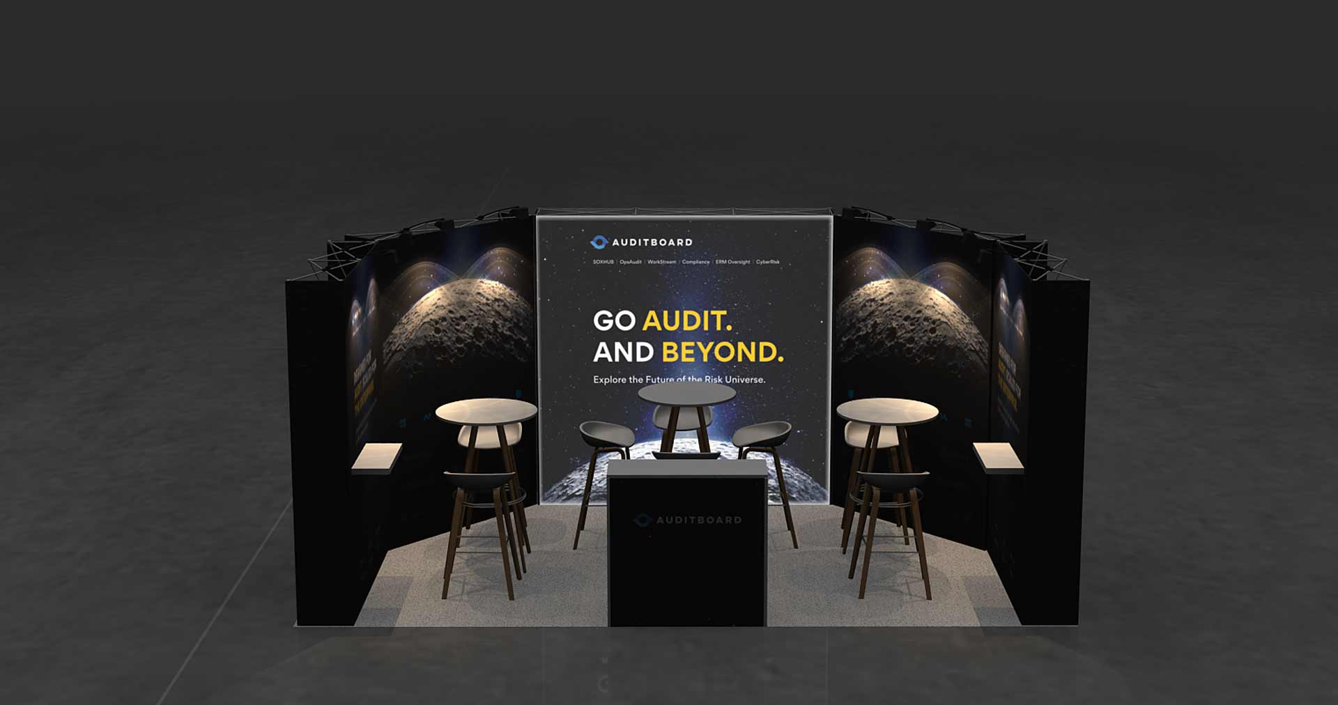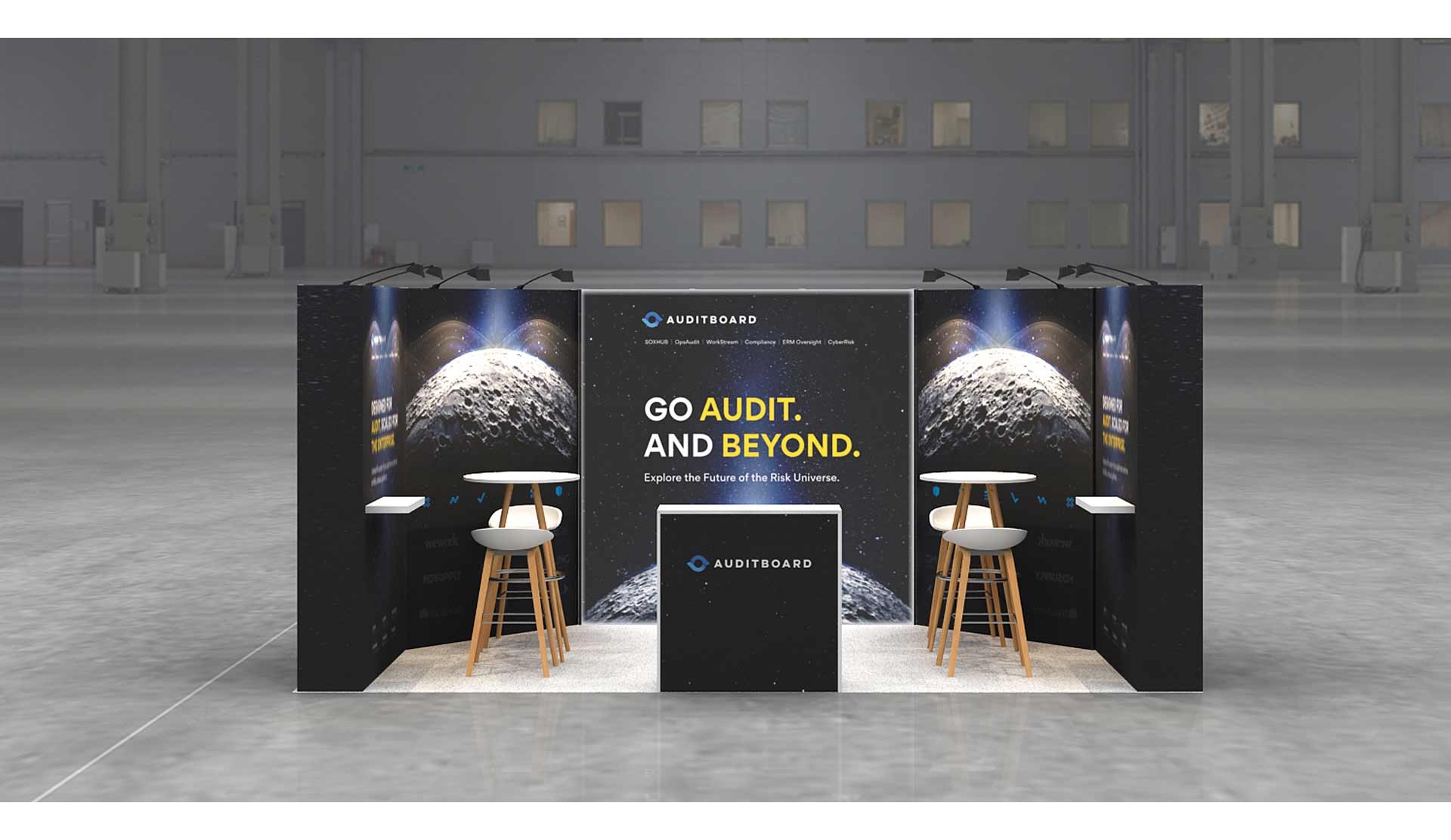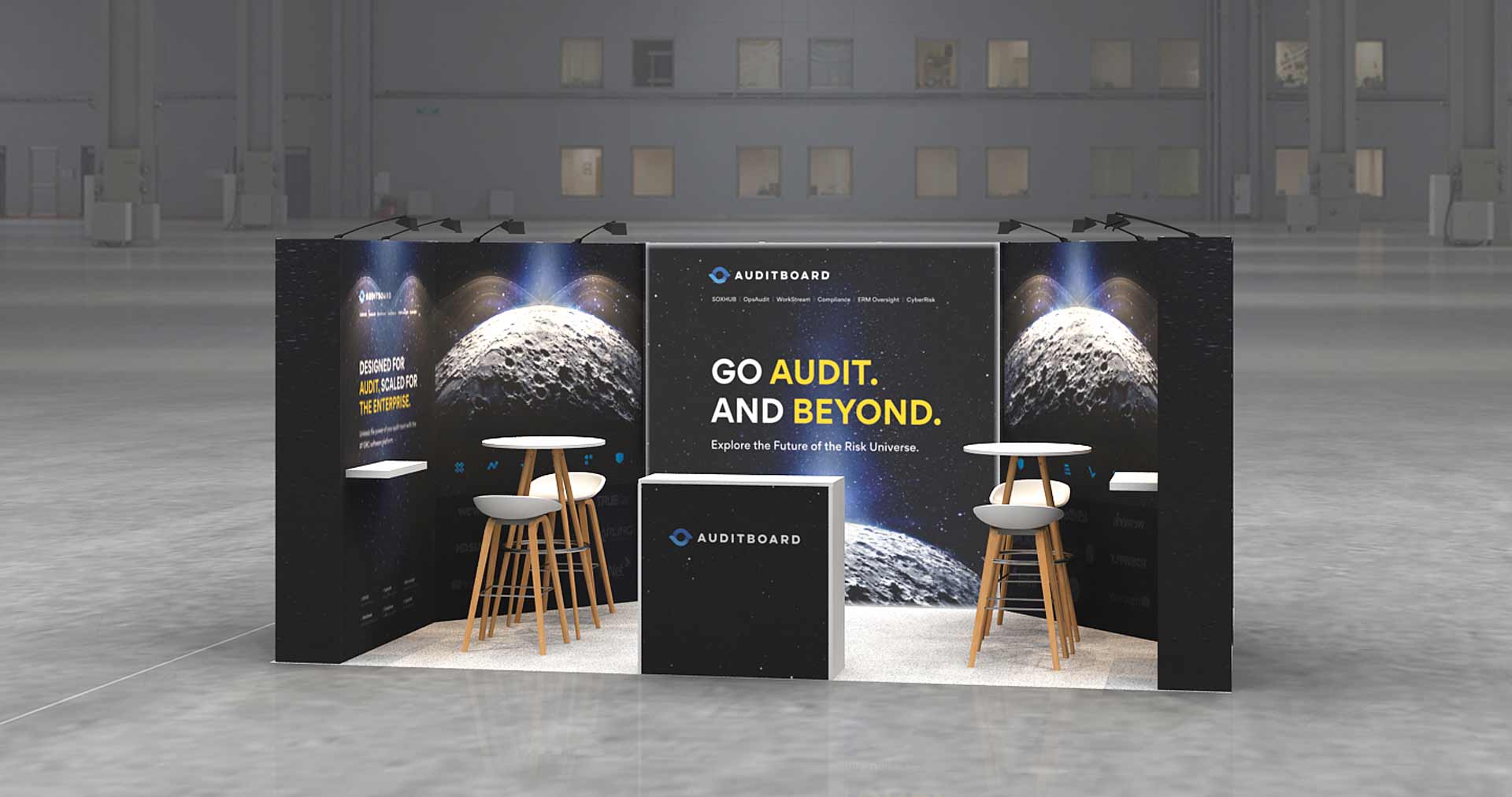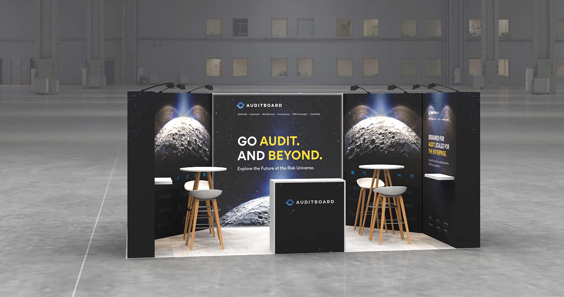 Las gráficas de este stand son en tela y permiten su cambio de forma rápida. Al ser un stand modular, se adapta fácilmente a otras configuraciones y tamaños.