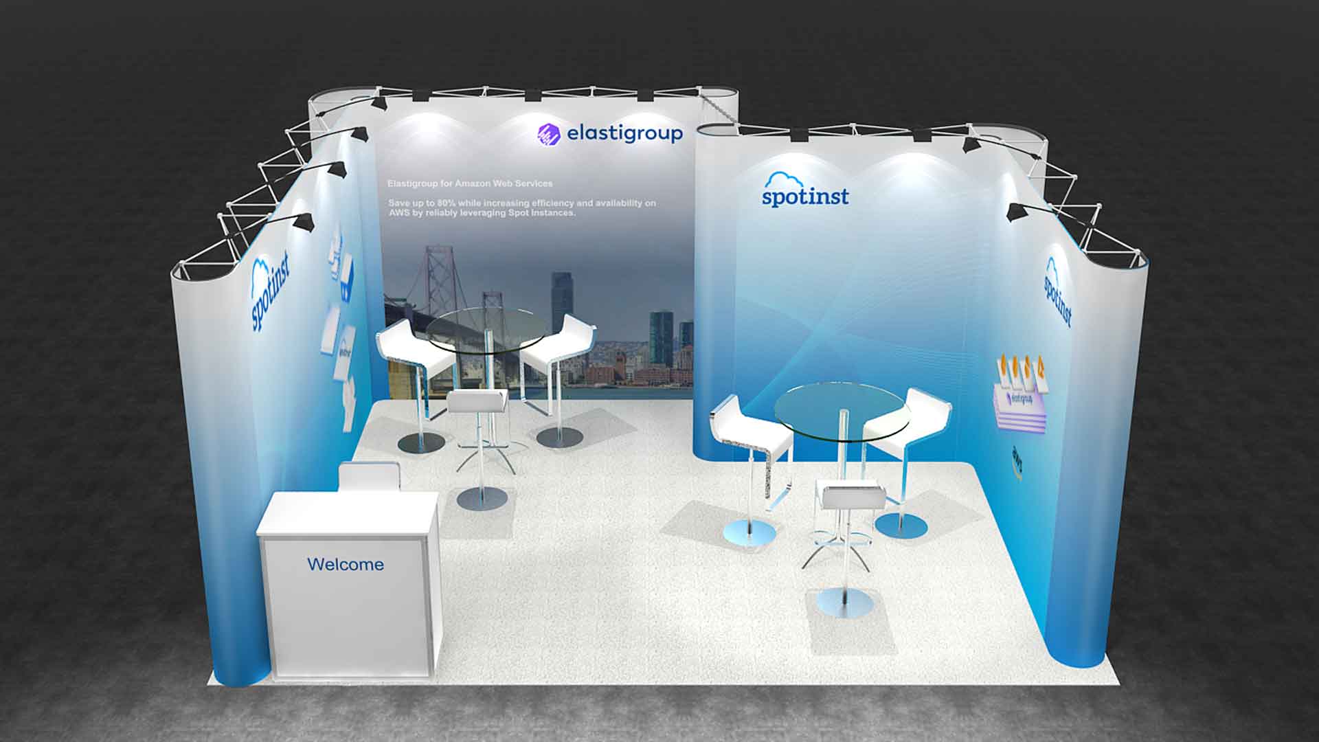 Las gráficas de este stand son imantadas y permiten su cambio de forma rápida. Al ser un stand modular, se adapta fácilmente a otras configuraciones y tamaños.