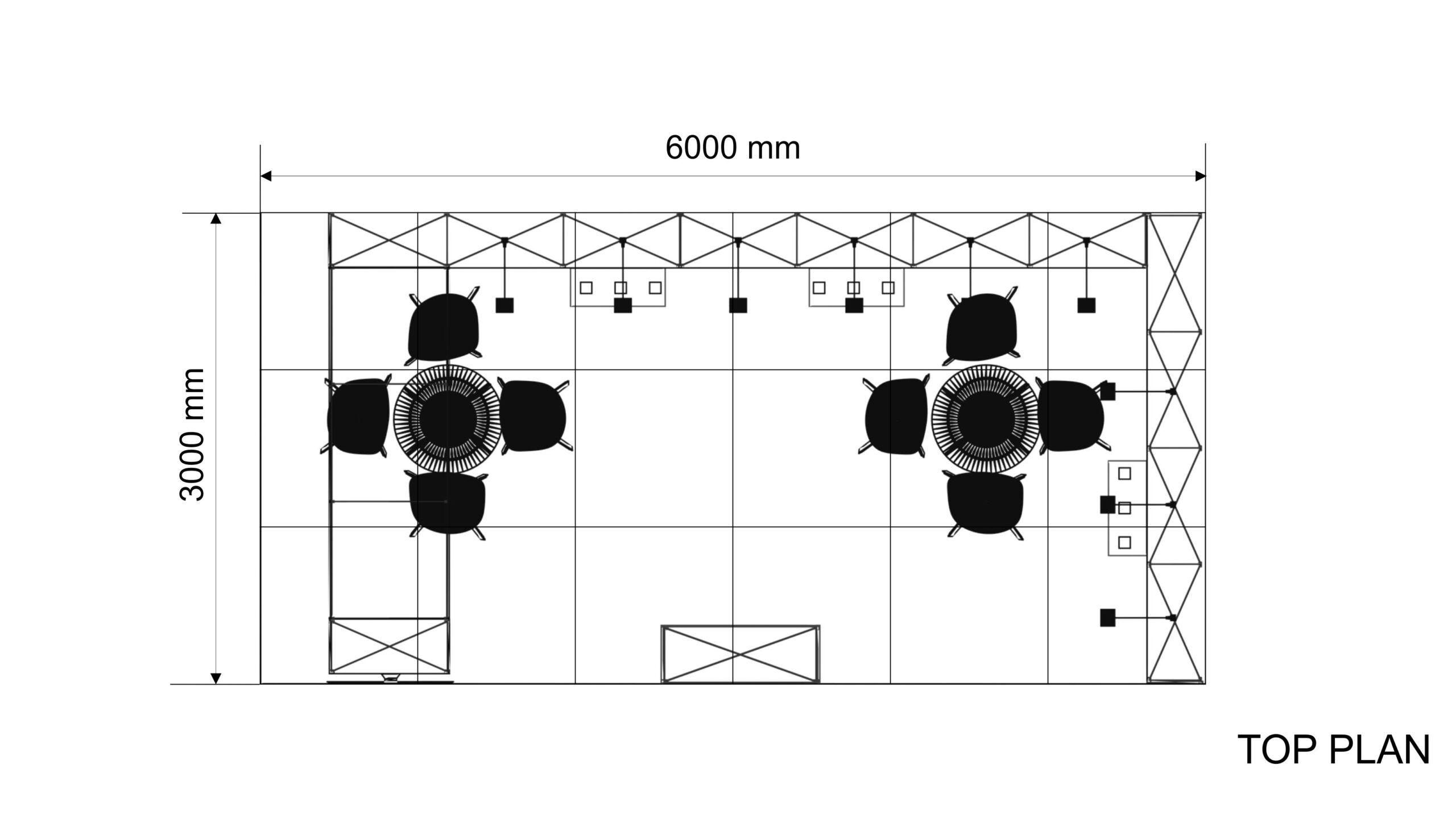 Con una longitud de 6 m. y un ancho de 3 m. este stand de 18 m² tiene un diseño abierto y es ideal para presentar sus productos y servicios en ferias.