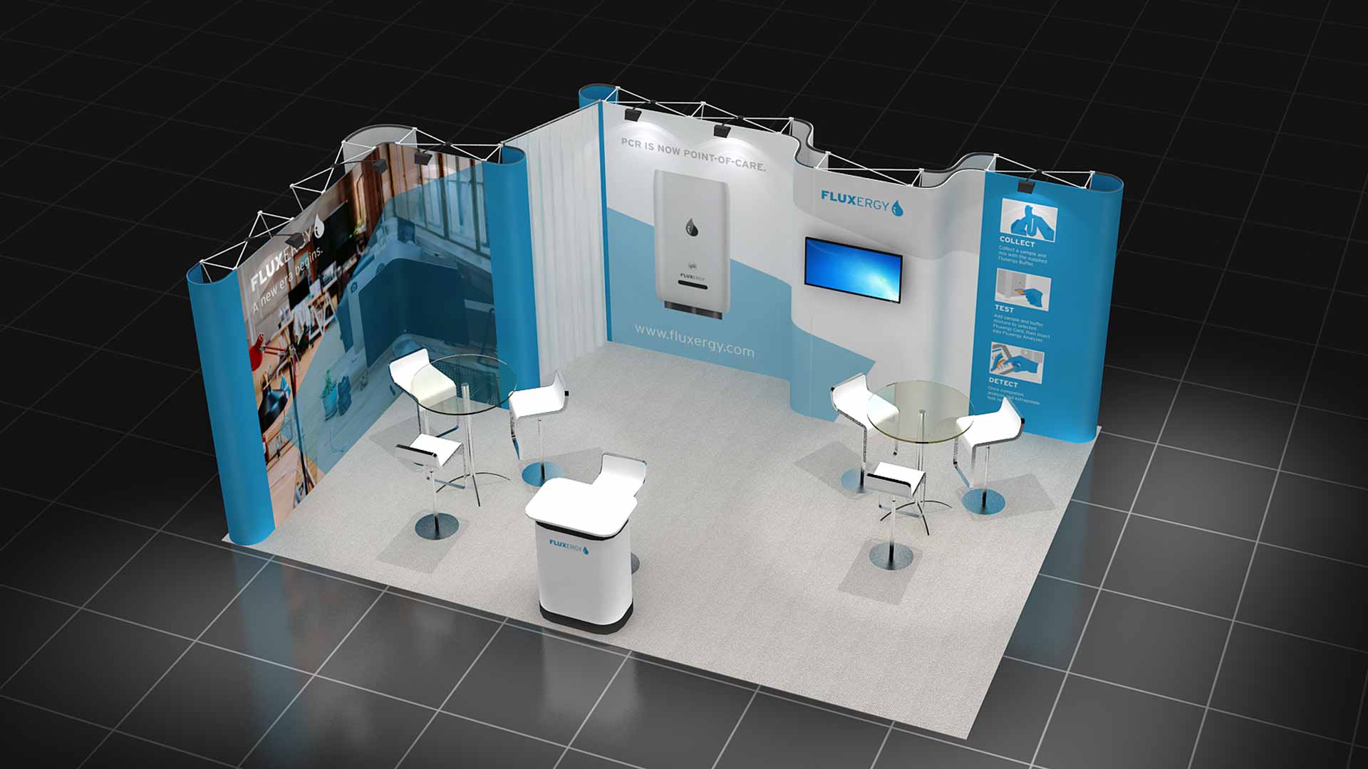 Las gráficas de este stand son imantadas y permiten su cambio de forma rápida. Al ser un stand modular, se adapta fácilmente a otras configuraciones y tamaños.
